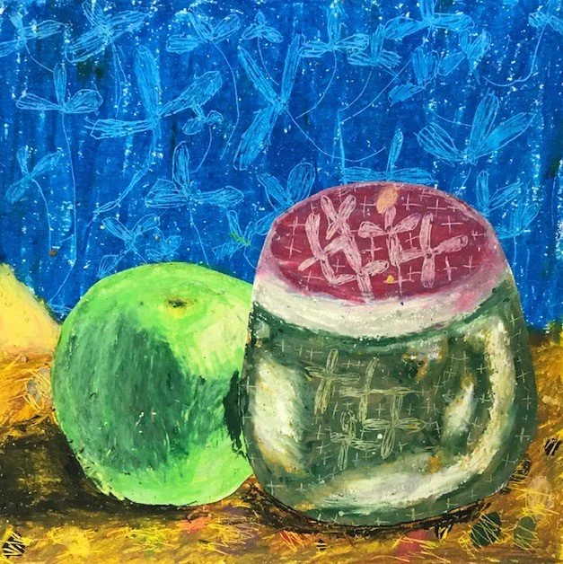 Miss Foster has chosen Hannah in Form Six for a fantastic attempt at creating a still life inspired by Cezanne. Brilliant use of sgraffito and blending with oil pastels. Well done Hannah!