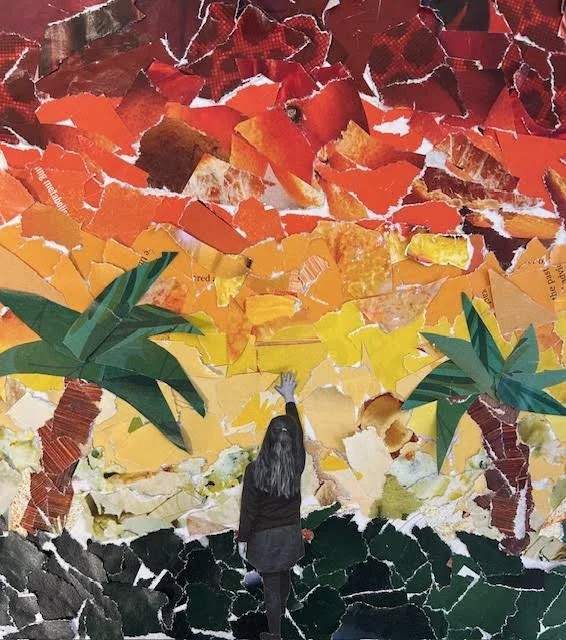 Darcy in Form Six, for a fantastic narrative landscape collage. Excellent use of colour, texture and composition, well done Darcy!