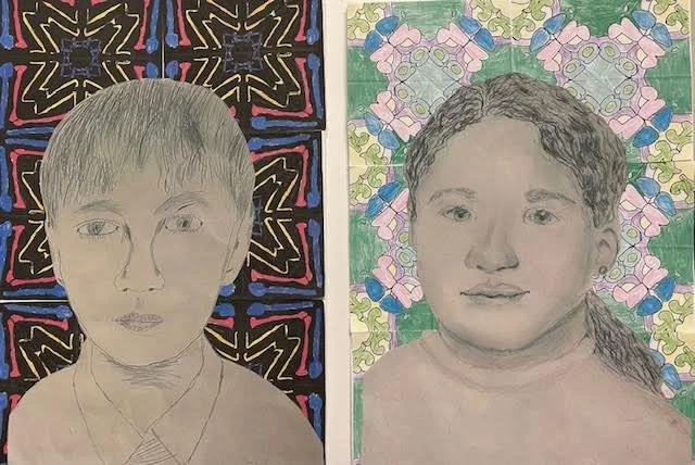 Alexander, in Form Five, and Kira, in Form Six, for creating brilliant self-portraits with fantastic patterned backgrounds, inspired by the early work of contemporary British artist, Sonia Boyce. Well done Kira and Alexander!