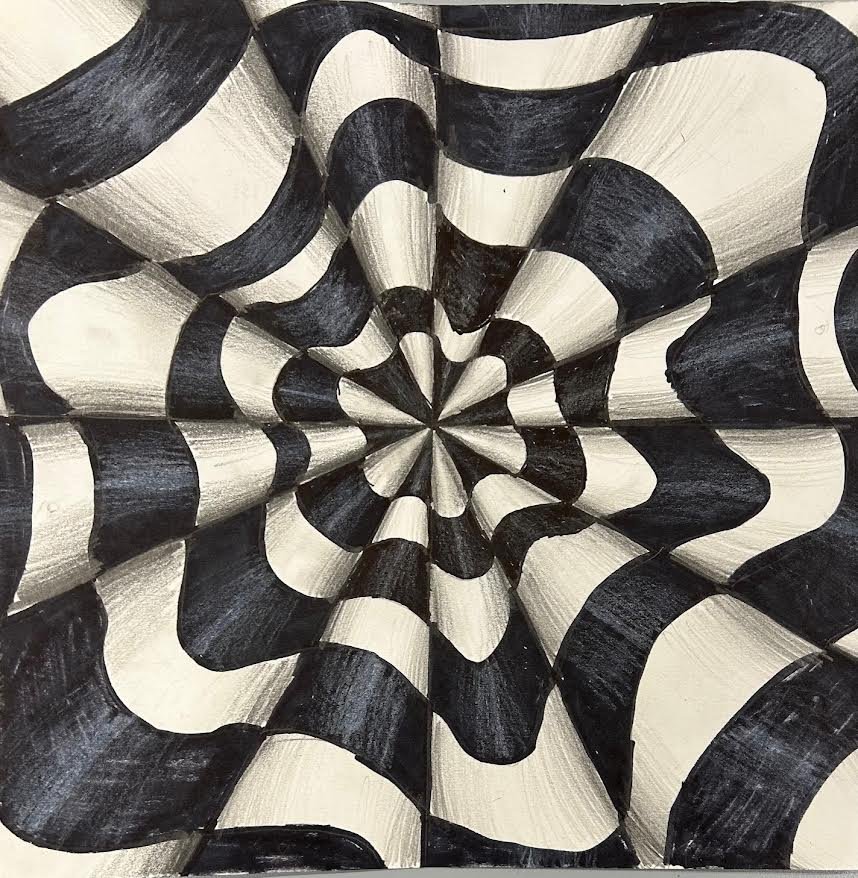 Lili in Form Five, for creating some fantastic ‘Op Art’ in art club! Brilliant use of shadows and highlights to produce the 3D effect, well done Lili!