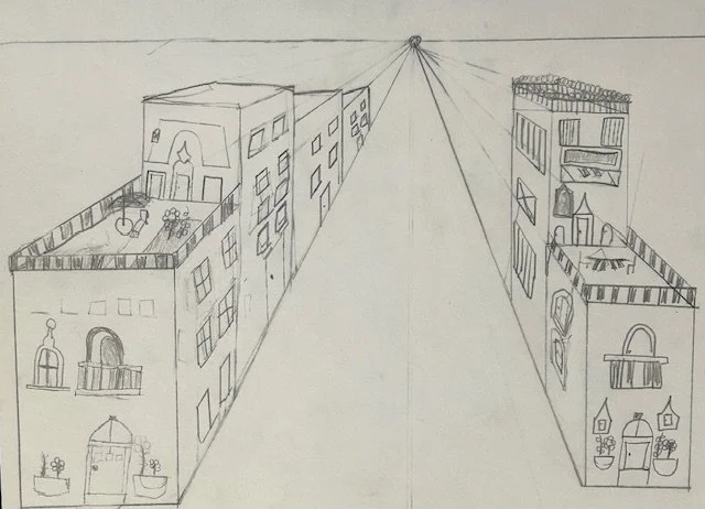 Teddy in Form Four, for fantastic drawing! An Excellent attempt at applying one-point perspective, inspired by Venetian architecture. Well done Teddy!