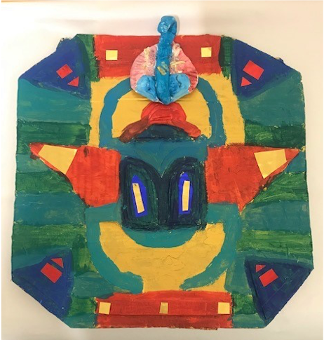 Miss Foster has chosen Izzy in Form Four, for creating a fantastic cardboard relief inspired by Ancient Egyptian artefacts. A wonderful, symmetrical scarab beetle, beautifully painted, well done Izzy!