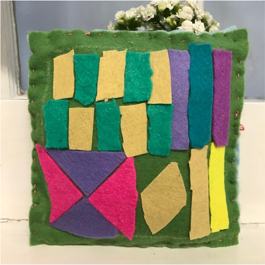 Sami in Form Two, for a fabulous cushion with a geometric pattern, inspired by the Bauhaus. Careful sewing and an excellent effort with cutting out the shapes, well done Sami!