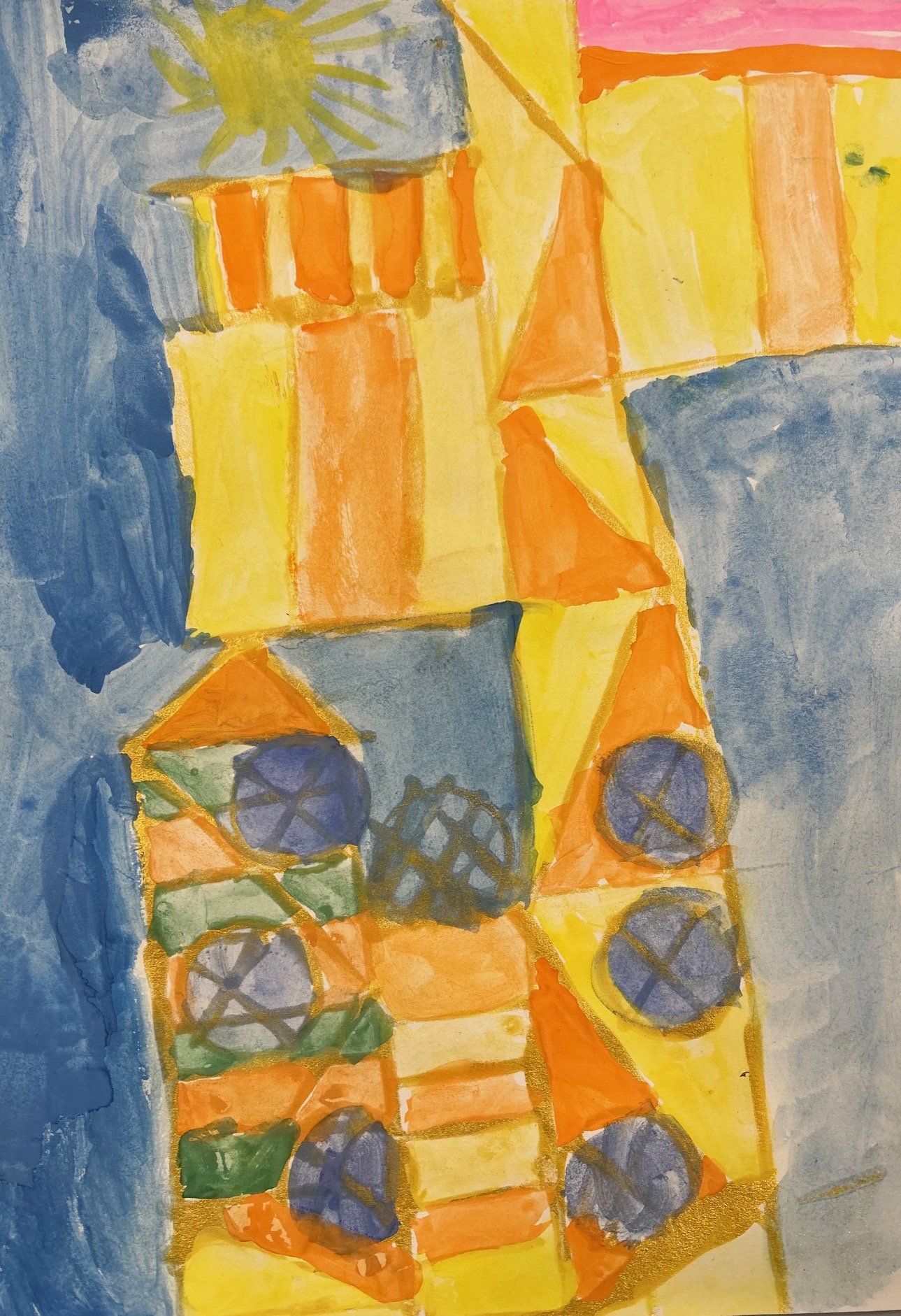 Thyra in Form One, for her beautiful use of lines and shapes as well as, warm and cool colours to create architecture, inspired by Paul Klee. This sunny building even includes a special children’s balcony, well done Thyra!