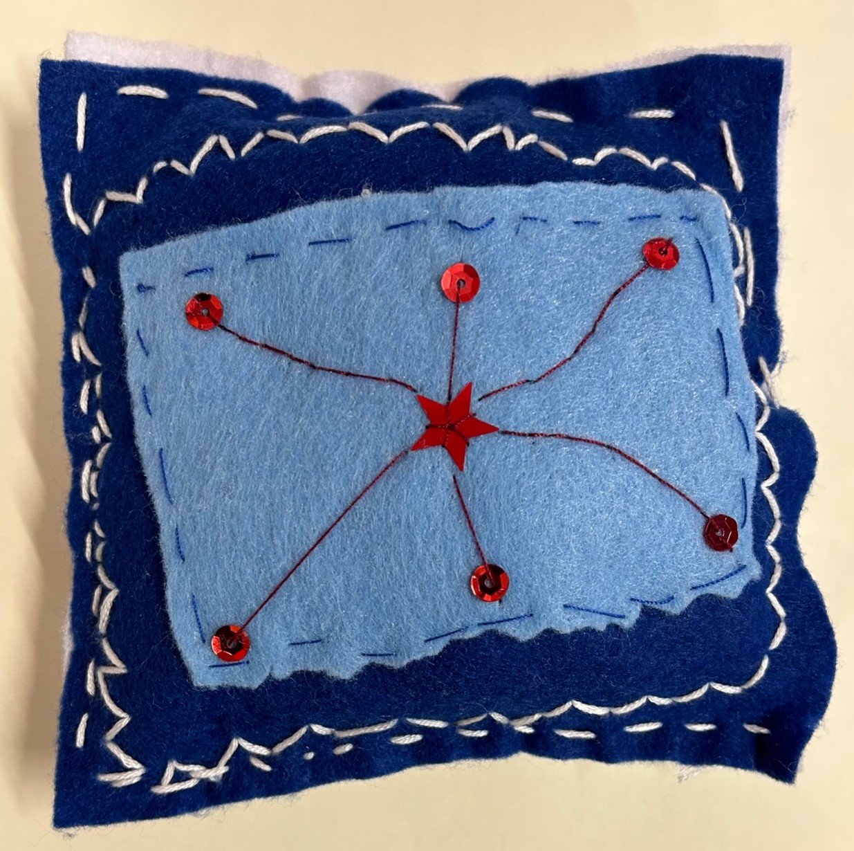 Lara in Form Four, for completing a fantastic cushion design with embroidery, appliqué and sequin embellishment. Well done Lara!