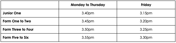 As a reminder dismissal times are as follows: